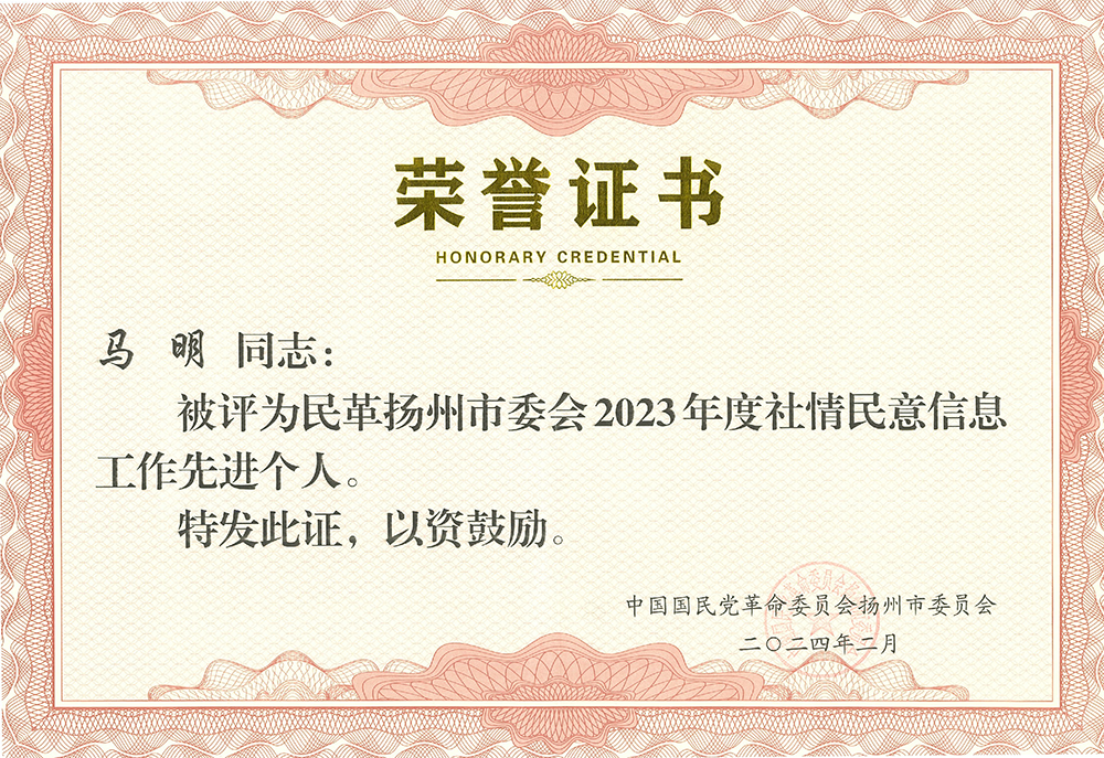 九州(中国)马明同志当选民革省水利建设支部主任委...