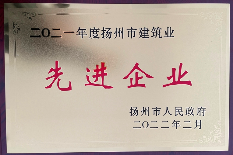 九州(中国)荣获扬州市建筑业先进企业