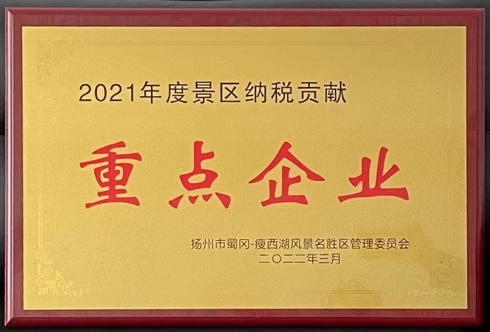 九州(中国)荣获扬州景区纳税贡献重点企业