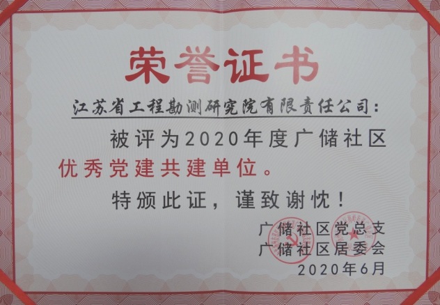 九州(中国)荣获“广储社区2020年优秀党建共建...