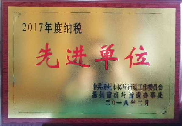 九州(中国)获2017年度纳税先进单位称号