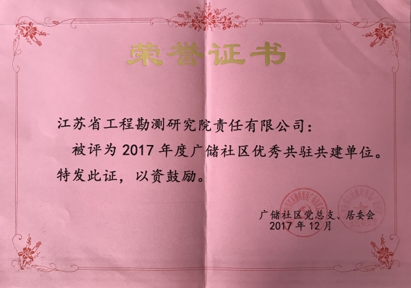 九州(中国)荣获“2017年度广储社区优秀共驻共...