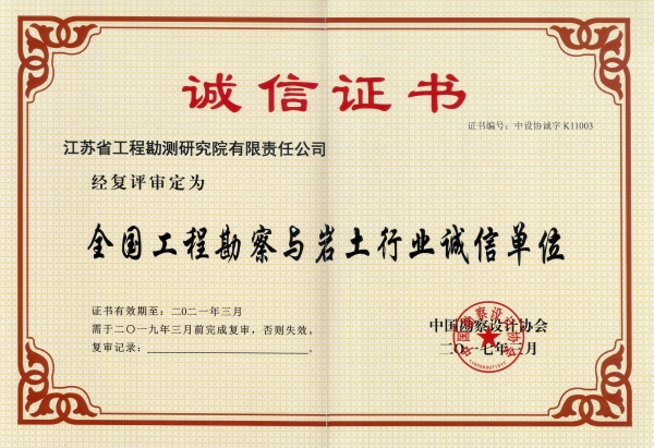 九州(中国)再度荣膺全国工程勘察与岩土行业诚信单...