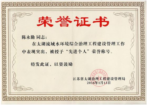 陈永勤受省太湖治理局表彰